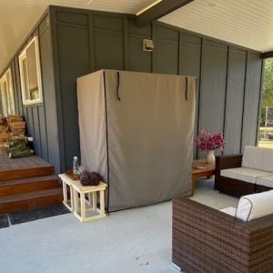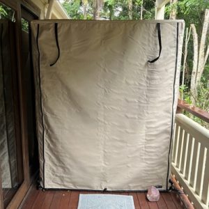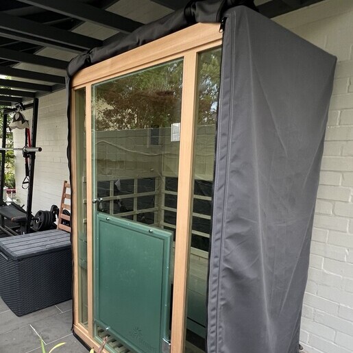 Therefore, if placed in an outdoor location the sauna must be fully protected from the elements. For example, the sauna must be located on a flat level hard surface, with full protection from direct rainfall and direct sun exposure, such as under a patio and away from the edge of the roof lining where they cannot be exposed to wind affected rain. For any sauna placed outside, we highly recommend protecting your sauna with our Australian made canvas covers. These covers will keep your sauna clean from dirt caused by wind driven dust, leaves and the like. The covers have a high degree of water repellency, but are not 100% waterproof as they need to be breathable to prevent moisture being trapped so as to avoid the formation of mold.